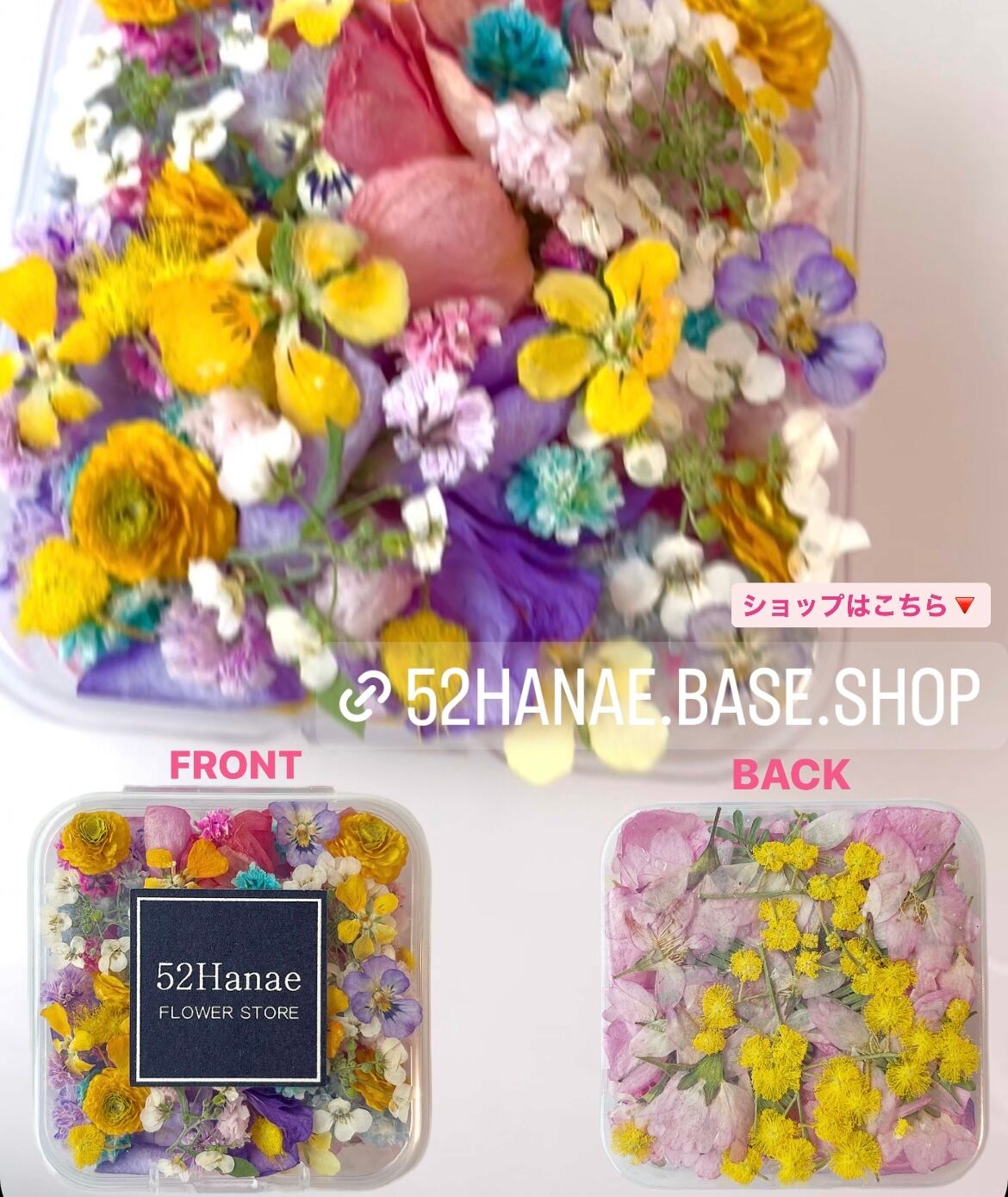 ケースの裏側に桜とミモザの押し花が入ります。